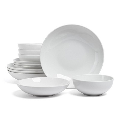 over&back 12pc Coupe Glossy Hand-Finished Porcelain Dinnerware Set White: Microwave & Dishwasher Safe, Service for 4