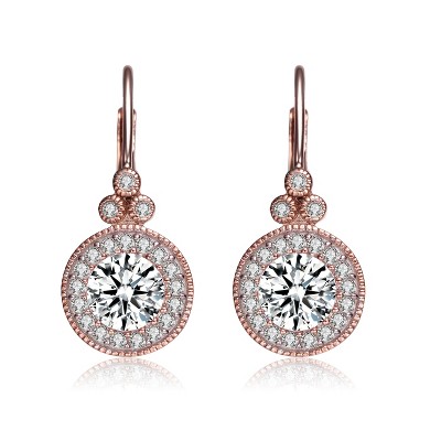 Guili Dangle CZ Earrings in Sterling Silver with Green, Clear & Rose Gold Accents – Radiant Sparkle for Modern Glam and Elegant Shine