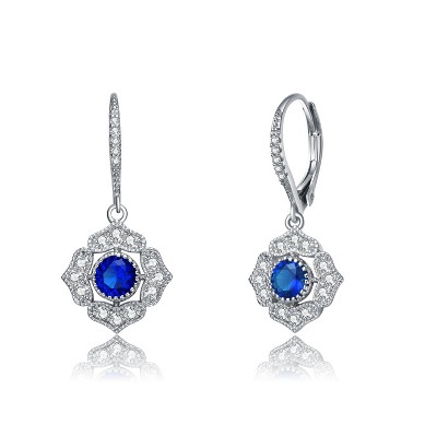 Guili Sterling Silver White Gold Plated Drop Earrings with Colored Cubic Zirconia, featuring a classic leverback design for timeless sparkle