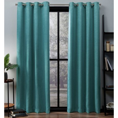 EXCLUSIVE HOME Kochi Light Filtering Linen Blend Grommet Top Curtain Panel Pair, 54"x84", Teal