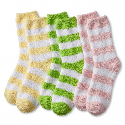 Tipi Toe Women's 3-Pairs Cozy Microfiber Anti-Skid Striped Patterned Soft Fuzzy Crew Socks
