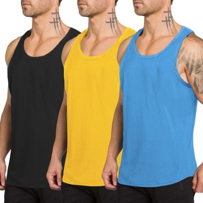 Coolmee Three Piece Mens Tank Top Soft Performance Boxing Gym Shirts Plain Muscle Tee
