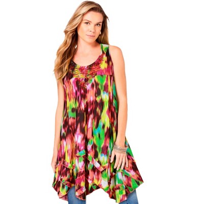 Woman Within Short-Sleeve Button Down Seersucker Shirt