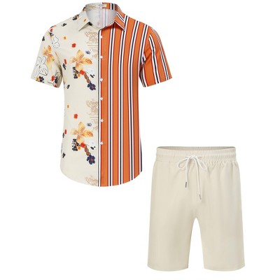 Clearlove Men's Hawaiian Sets Floral Printed Short Sleeve Button Down Shirts Drawstring Shorts Casual Outfits