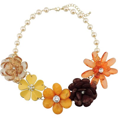 Alilang Gold Tone Multicolor Enamel Floral Statement Necklace with Pearl and Crystal Accents