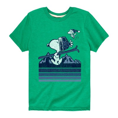 Boys' - Peanuts - Snoopy Woodstock Ski Stripes Short Sleeve Graphic T-Shirt