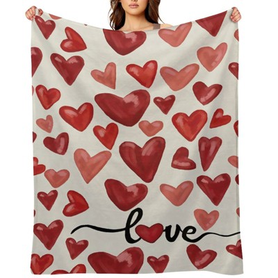 Valentine's Day Fleece Blanket Ultra Soft Anti-Pilling Watercolor Heart Love Print for Couch Bed Camping