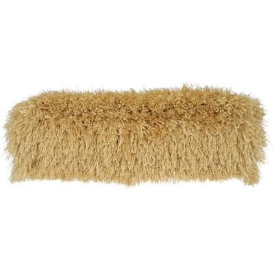 HomeRoots 5" X 20" Yellow Bolster Shag Bolster Throw Pillow