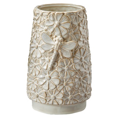 Teardrop Ceramic Vase with Floral Embossed Accents for Living Room Decor - Decorative Boho Flower Vase for Home Display