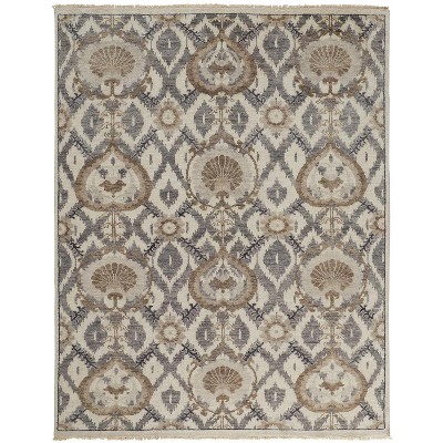 Tan Silver And Gray Wool Floral Tufted Handmade Area Rug