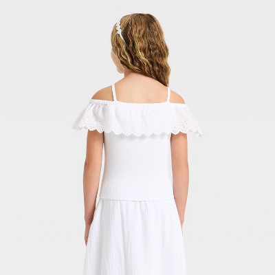 Girls' Off the Shoulder Eyelet Trim Top - Cat & Jack™