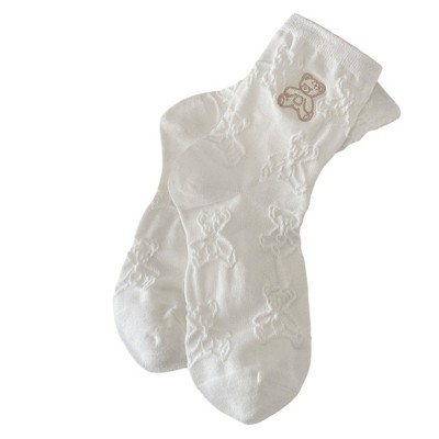 Anna-Kaci Women's 3-Pair Crew Sock Set Teddy Bear Textured Knit Soft Stretch Comfortable Everyday Socks - White