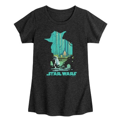 Girls' - Star Wars - Yoda Silhouette Scene Fitted Short Sleeve Graphic T-Shirt
