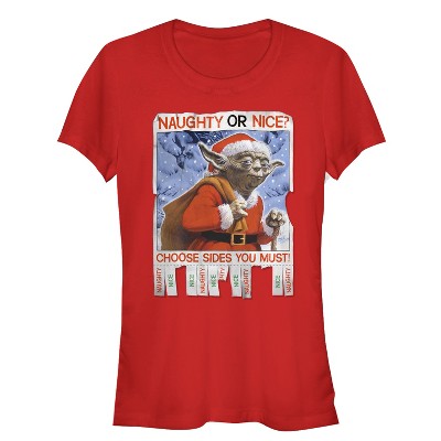 Juniors Womens Star Wars Christmas Yoda Naughty or Nice T-Shirt
