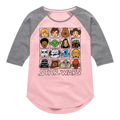 Girls' - Star Wars - Yoda and Friends Face Grid Fitted Short Sleeve Graphic T-Shirt