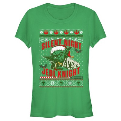 Juniors Womens Star Wars Christmas Yoda Silent Night Jedi Knight T-Shirt