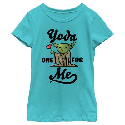 Girl's Star Wars Valentine's Day Yoda One for Me Cartoon T-Shirt