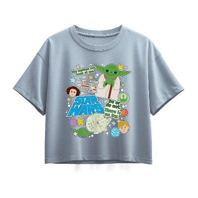 Girls' - Star Wars - Yoda Stickers Short Sleeve Boxy Graphic T-Shirt