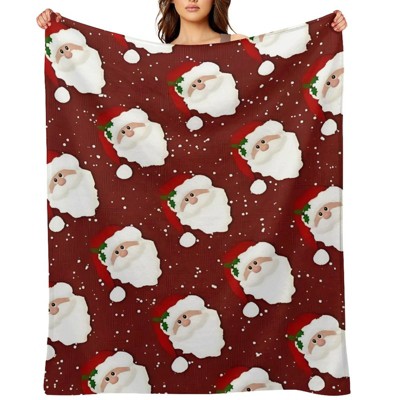 FIONECA Burgundy Santa Claus Head Snowflake Pattern Festive Christmas Throw Blanket Holiday Cozy Decor 60x80 inches