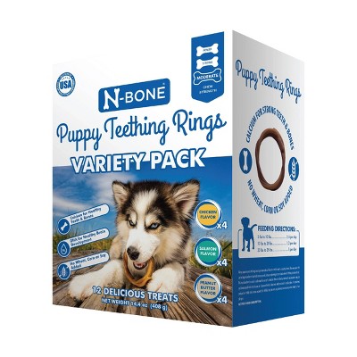 N-Bone Puppy Teething Rings Dog Treat with Chicken, Salmon and Peanut Butter Flavor - 14.4oz/12ct