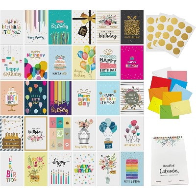 36ct Birthday Card Set: Canopy Street Multicolor Balloon Design, Matte Finish, Single-Design Boxed Pack