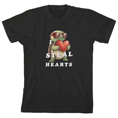 Turtle I Steal Hearts Youth Black Crew Neck Short Sleeve T-shirt