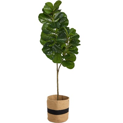 Nearly Natural 5.5-ft Fiddle Leaf Fig Artificial Tree in Handmade Natural Cotton Planter