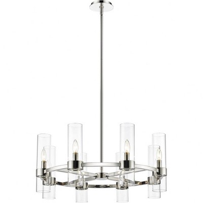 Viviana 8-Light Art Deco Pendant - Polished Nickel Steel, 26" x 12" - Dimmable & Dry Rated