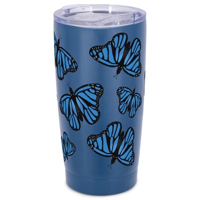 Elanze Designs 20 oz Stainless Steel On the Go Insulated Travel Tumbler With Push Top Lid, Floral Butterfly Niece You Are Loved Sky Blue