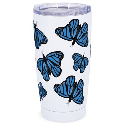 Elanze Designs 20 oz Stainless Steel On the Go Insulated Travel Tumbler With Push Top Lid, Classic Footprint in the Sand Poem Blue