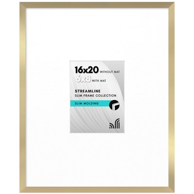 Americanflat 16x20 Picture Frame with Polished Plexiglass - Use as 6x8 Frame with Mat or Display 16x20 Photo Without Mat - Gold