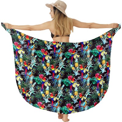 LA LEELA Swim Cover Up Long Women's Beachwear Summer Pool Beach Wraps Skirt Swimwear Sarong Sheer Coverups Scarf for Women One Size Black Floral