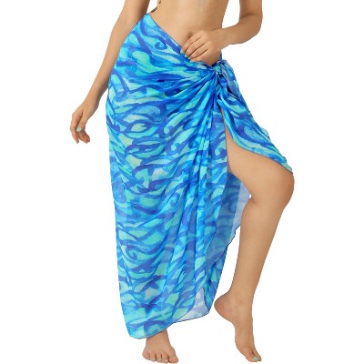 LA LEELA Swim Cover Up Long Women's Beachwear Summer Pool Beach Wraps Skirt Swimwear Sarong Sheer Coverups Scarf for Women One Size Blue Floral