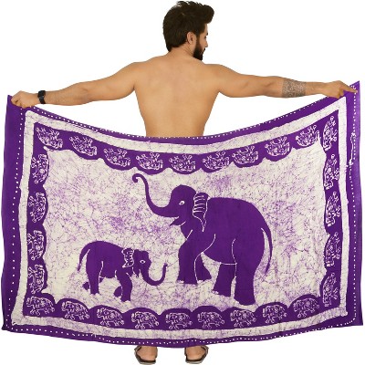 LA LEELA Men's Swimwear Cover Up Summer Pareo Sarong One Size Purple Abstract