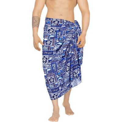LA LEELA Men's Sarong Beach Cover Up Beach Wrap One Size Blue Floral