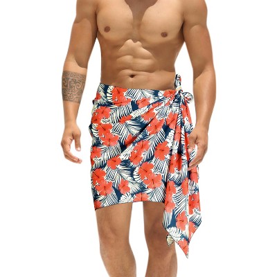 HAPPY BAY Men's Pareo Wrap Beach Bath Swim Sarong One Size Floral Red