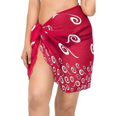 LA LEELA Women's Bikini Skirt Sarong Swimwear Cover up Summer Wraps Swimsuit Beach Wrap Coverups for Women One Size Red Floral
