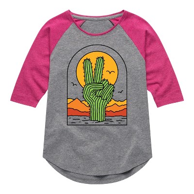 Girls' - Instant Message - Cactus Peace Sign Shirt Tail Raglan Graphic T-shirt