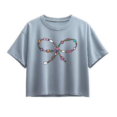 Girls' - Instant Message - Blue Bows Short Sleeve Boxy Graphic T-Shirt