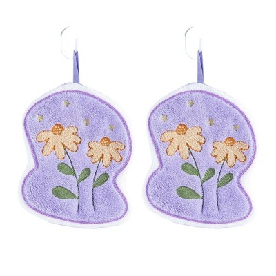 Alilang 2 Pack Coral Fleece Hanging Hand Towels Floral Design Soft Kitchen Bathroom Hand Towels, Light Purple