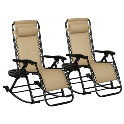 Outsunny Outdoor Rocking Chairs, Foldable Reclining Anti Gravity Lounge Rocker w/ Pillow, Cup & Phone Holder, Combo Design w/ Folding Legs