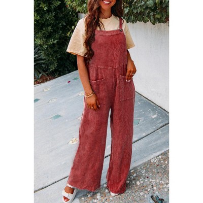 Women's Chic Brown Corduroy Wide-Leg Jumpsuit - Cupshe