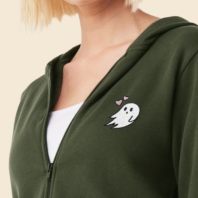 Dalix Heartly Ghost Embroidered Fleece Zip Hoodie Cold Fall Winter Women