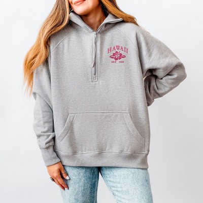 Simply Sage Market Embroidered Hawaii Flower Quarter Zip Fleece