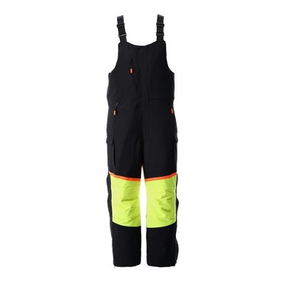 RefrigiWear Insulated Softshell Enhanced Visibility Bib Overalls - Hi-Vis, Water-Resistant, 30°F Comfort Rating, Durable Cold Weather Workwear