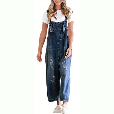 Imily Bela Women's Distressed Denim Overalls Loose Fit Casual Adjustable Strap Bib Jeans Jumpsuit with Pocket