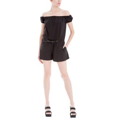 Reistor Womens V neck Drawstring Knit Romper in Black Small