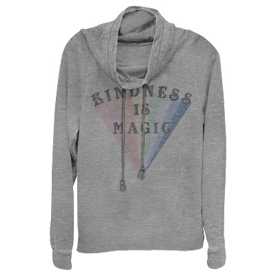 Juniors Womens CHIN UP Kindness is Magic Rainbow Cowl Neck Sweatshirt