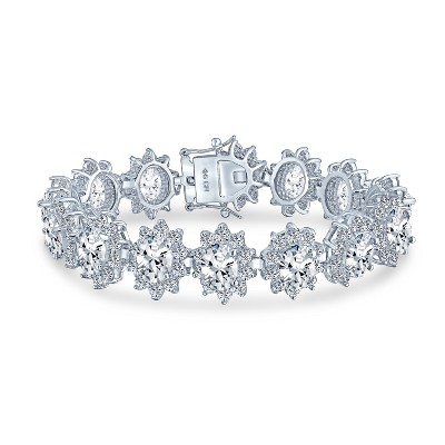 Bling Jewelry Style Fashion Oval Crown Halo Statement Bracelet Matching Clip On Earrings Jewelry Set Silver Plated