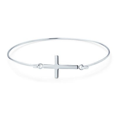 Bling Jewelry Delicate Simple Religious Sideways Cross Bangle Bracelet .925 Sterling Silver